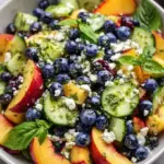 There’s something undeniably enchanting about the combination of summer’s sweetest fruits. The air carries a hint of warmth, inviting us to indulge in vibrant, fresh ingredients that sing with flavor. Imagine taking a moment in the sun, where each bite bursts with juicy peaches and plump blueberries, creating a melody of sweetness and tanginess on your palate. The aroma of ripe fruits mingles with the herbal notes of lemon basil, promising a refreshing escape that lights up your senses. As you scoop up a forkful of this Blueberry Peach Salad, you can feel the crunch of fresh cucumbers complementing the creamy crumbles of feta and the joyful explosions of flavor from the fruits. Each mouthful offers a celebration of summer’s bounty.