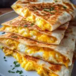 Delicious and satisfying cheddar egg quesadillas, perfect for breakfast or a quick meal. Crispy tortillas filled with fluffy scrambled eggs and sharp cheddar cheese.