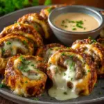 A warm, cheesy dish combining rich ground beef and gooey cheese wrapped in flaky crescent dough, perfect for weeknight dinners or gatherings.