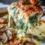 - Layer the sautéed mixture of mushrooms, onions, and spinach over the chicken.