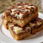 Indulge in the comforting flavors of these Cinnamon Roll Bliss Bars, featuring a soft cake base, cinnamon swirls, and a creamy drizzle that enhances every bite.
