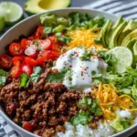 Every element of this Low Carb Burrito Bowl contributes to a sensory journey. The warm, savory beef intertwines seamlessly with the cool crunch of shredded romaine lettuce, while creamy avocado and a dollop of tangy sour cream elevate the entire affair. As you squeeze a fresh lime wedge over your creation, the zesty finish refreshes the palate, promising a dish that feels indulgent yet nourishing. Time seems to pause as you savor each mouthful, wrapped up in a dish that feels both casual and celebratory—perfect for a weekday dinner or a gathering with friends.