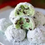 Delight in these Mint Chocolate Chip Snowball Cookies, featuring a crunchy exterior and a melt-in-your-mouth center filled with mini chocolate chips and a refreshing zing of peppermint.