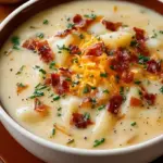 This is more than just potato soup—it’s comfort in a bowl. It’s a celebration of the humble potato, elevated with rich flavors that come together beautifully. With every creamy spoonful, you relish the harmonious blend of textures: the tenderness of the potatoes, the satisfying crunch of bacon, and the ribbons of melted cheese that swirl together like a warm embrace. It’s a dish that speaks to your heart and palate, perfect for cozy winter nights, rustic dinners, or even as an appetizer for lively gatherings.