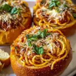 Spaghetti Garlic Bread Bowls elevate your meal to an invitation of creativity. They won’t just fill you up; they’ll envelop you in flavor. The soft, cheesy interior contrasts splendidly with the crusty exterior, offering a texture you can’t resist. Each bread bowl cradles the delicate strands of spaghetti and vegetables, creating a hearty vessel that you can actually eat. This beautiful combination tempts your senses, inviting you to relish not just the meal but the moments shared with loved ones, making every bite a celebration of food and togetherness.