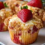 Deliciously fluffy muffins filled with tangy cream cheese and fresh strawberries, perfect for breakfast or a delightful snack.