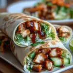 There’s something undeniably delightful about Sweet Chili Chicken Wraps. Imagine sinking your teeth into a warm, tender wrap, bursting with vibrant flavors and textures that dance across your palate. The aroma of sizzling chicken mingles with the sweet, spicy fragrance of chili sauce, inviting you to take that first mouthwatering bite. Each element harmonizes seamlessly—the crunchy cucumbers and carrots pop with freshness, the creamy contrast of cilantro adds a fragrant punch, and the crisp lettuce provides an undeniable crunch. This isn’t just a meal; it’s an experience, a colorful feast that transports you to sunny days and gatherings with loved ones.